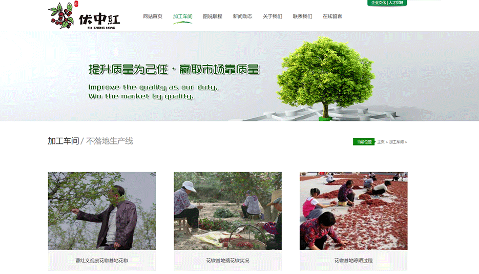 甘肃天水具有盛产花椒的良好地理环境,曹灶义先创立联程农业以来,一直有两句话挂在边“思想要走到行动前沿”、“质量是企业生存的基础”在2012年,所有花椒都是以往模式发展的时候,曹灶义先生已经在思考花椒的未来。巾帼不断努力成为了众多品牌的花椒供应商:周黑鸭,大娘水饺,雨润等。